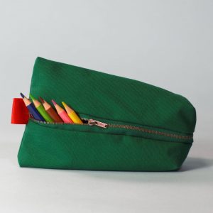 Es handelt sich um ein handgefertigtes Schlampermäppchen, oder auch Faulenzermäppchen. Es wurde aus Grünem Stoff genäht und hat einen Grünen Reißverschluss.