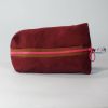 Es handelt sich um ein handgefertigtes Schlampermäppchen, oder auch Faulenzermäppchen. Es wurde aus Orangenem Stoff mit bunter Rückseite.